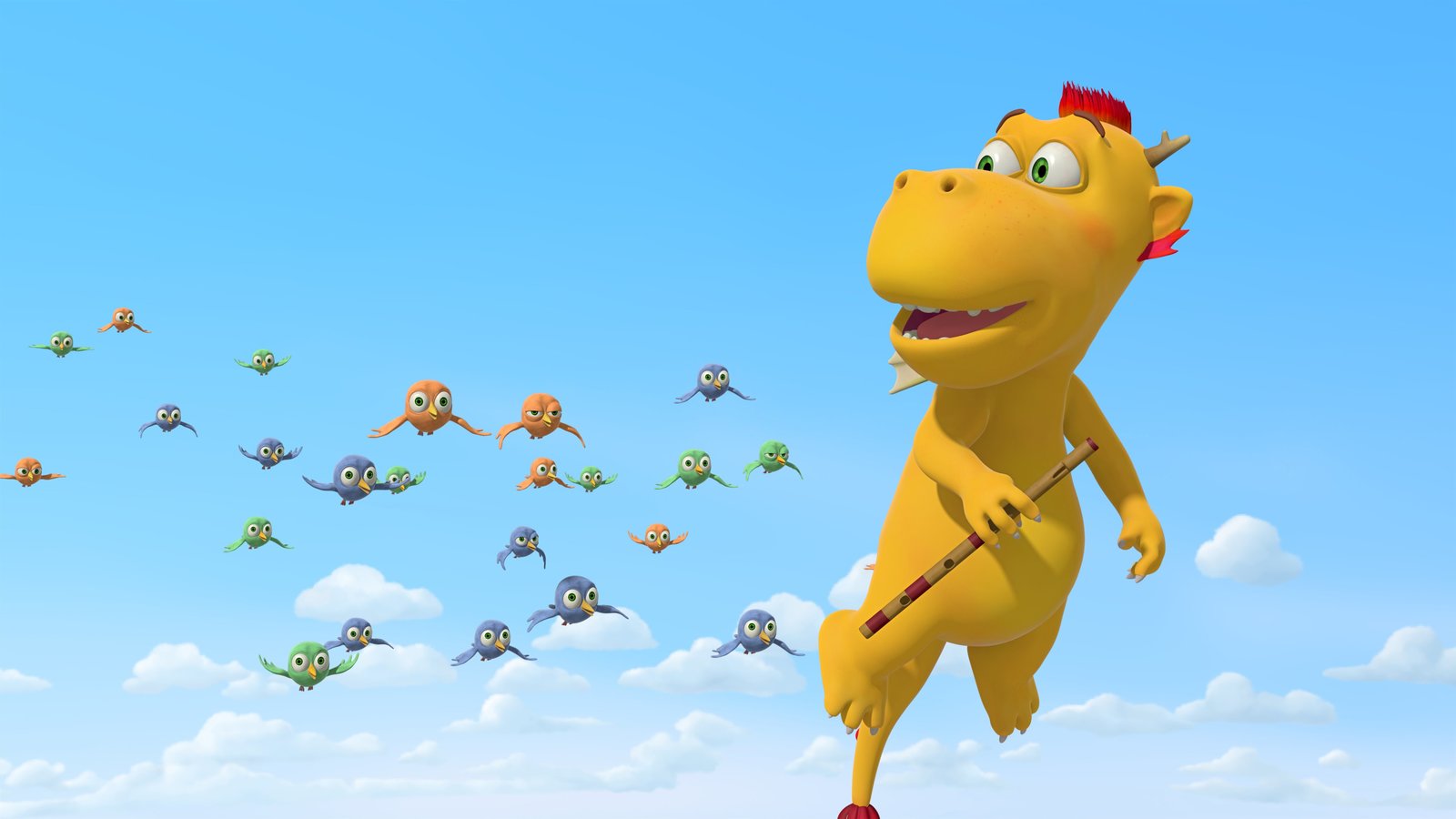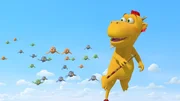 Der ZaubertrankDer Himmelsdrache Xiexie hat eine Idee, wie der aufdringliche Vogelschwarm von Big Bo weggelockt werden kann.Bild: © ZDF/Caligari Film