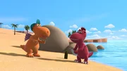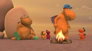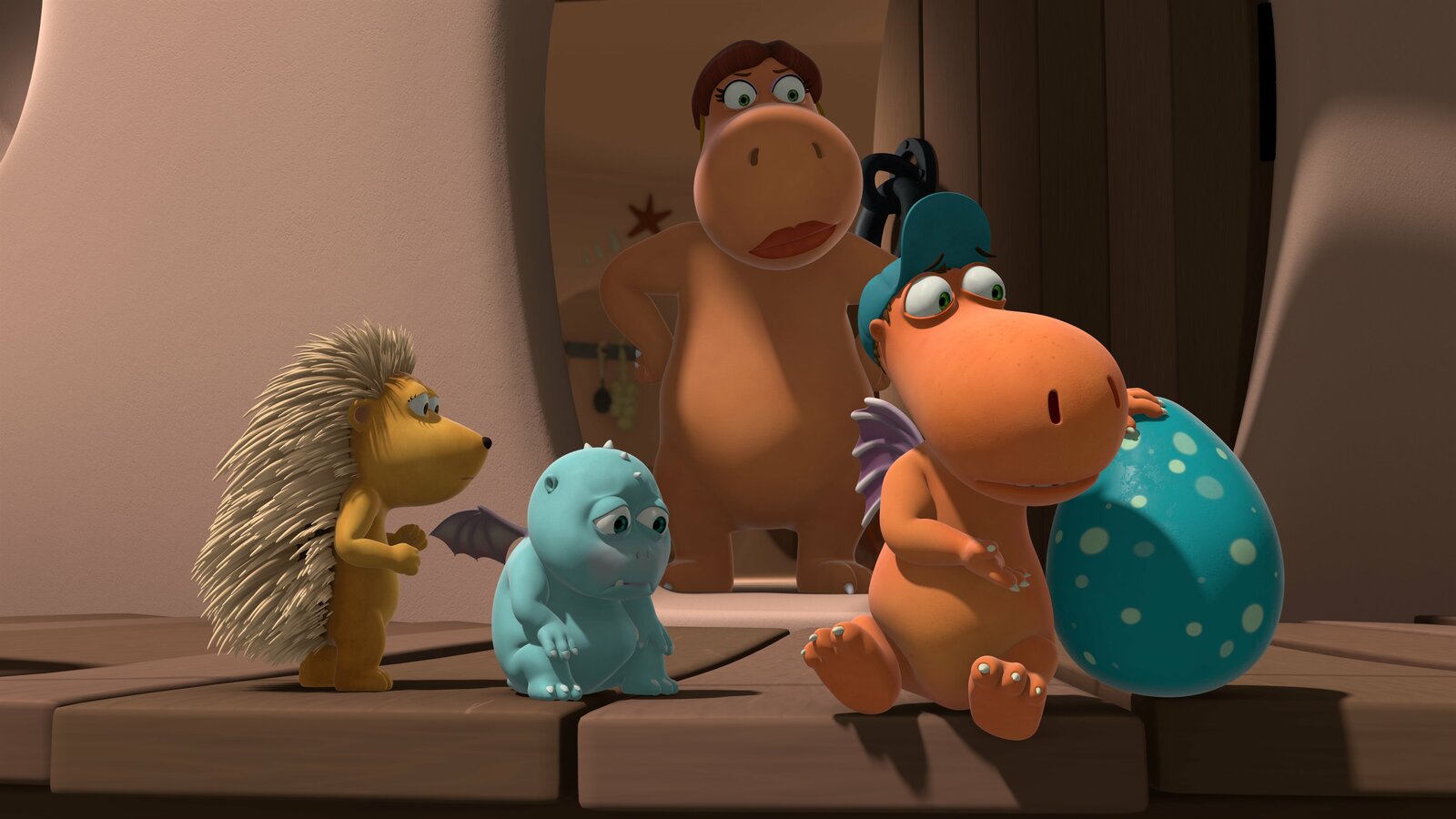 Das Höhlenmonster"Der kleine Drache Kokosnuss", "Das Höhlenmonster." Dem herzensguten Höhlendrachen Balduin schlottern vor Angst die Knie. In seiner Behausung hat sich ein riesiges Monster einquartiert! Kokosnuss überredet seinen Vater, Balduin eine Nacht bei ihnen schlafen zu lassen. Da Balduin aber von Natur aus furchtbar stinkt, ist allen sehr schnell klar, dass dies keine Lösung auf Dauer sein kann. Vielmehr sieht es ganz danach aus, als bliebe Balduin wohl nichts anderes übrig, als sich seiner Angst zu stellen und dem Monster ins Auge zu blicken.Bild: © ORF eins