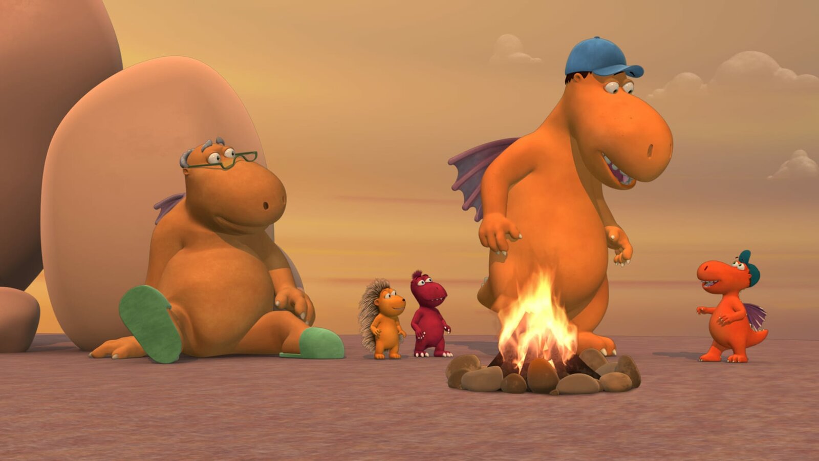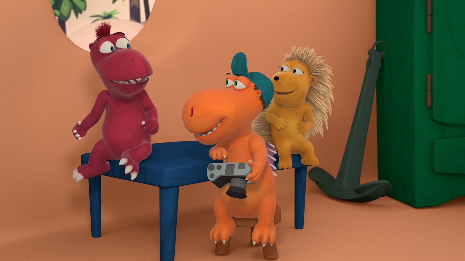 Chef will hoch hinausDie Freunde sind zufrieden mit ihrem Video. So wird Chef sicherlich nicht das Fressdrachendorf verlassen.Bild: © ZDF und Caligari Film GmbH.