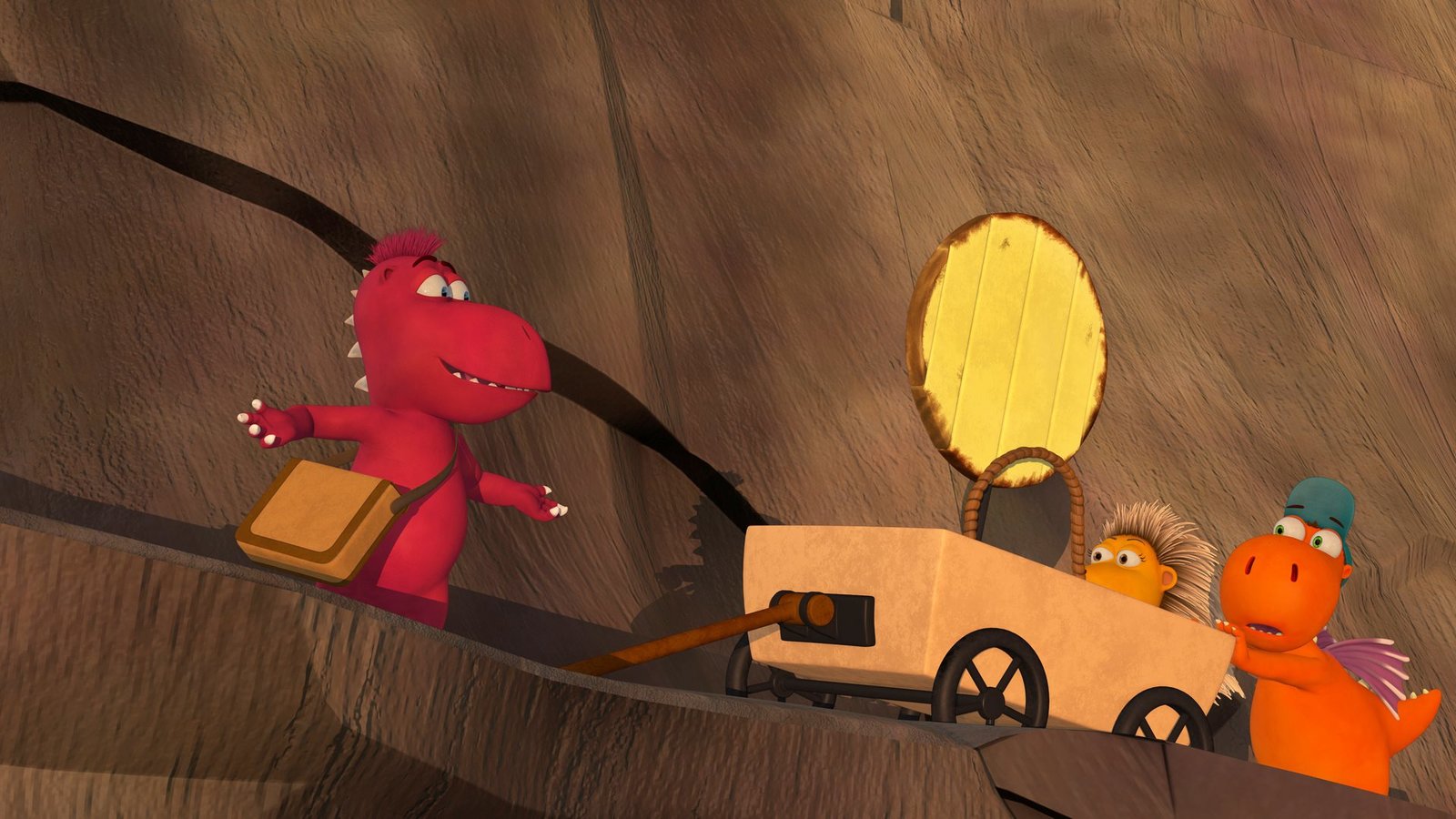 Der kleine Drache Kokosnuss, Oskar und Matilda lassen sich selbst im Schlund eines Schlucklochs nicht die Laune verderben.Bild: © ZDF/Caligari Film