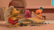 Job gesucht!Mit Zuversicht beginnen Matilda, Oskar und Kokosnuss den Job, den sie bei Frau Proselinde angenommen haben. Sie sollen ihr einen neuen Schrank aufbauen.Bild: © ZDF/Caligari Film