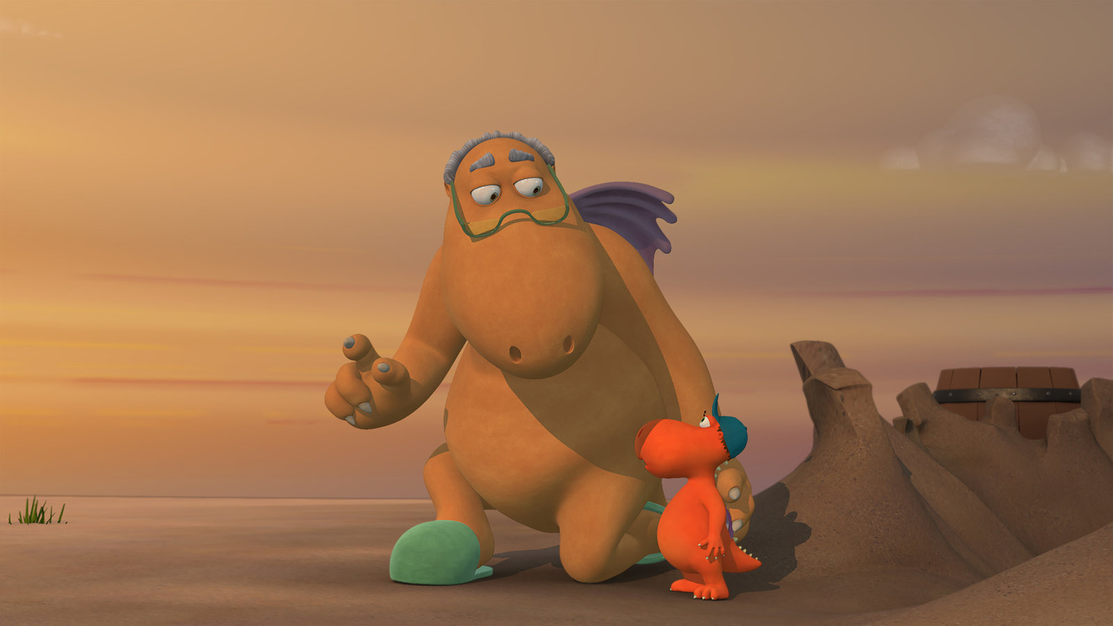 Zoff am StrandSchönstes Wetter am Badestrand! Aber die Drachen haben nichts besseres zu tun, als sich um die besten Plätze zu streiten.Bild: © ZDF/Caligari Film