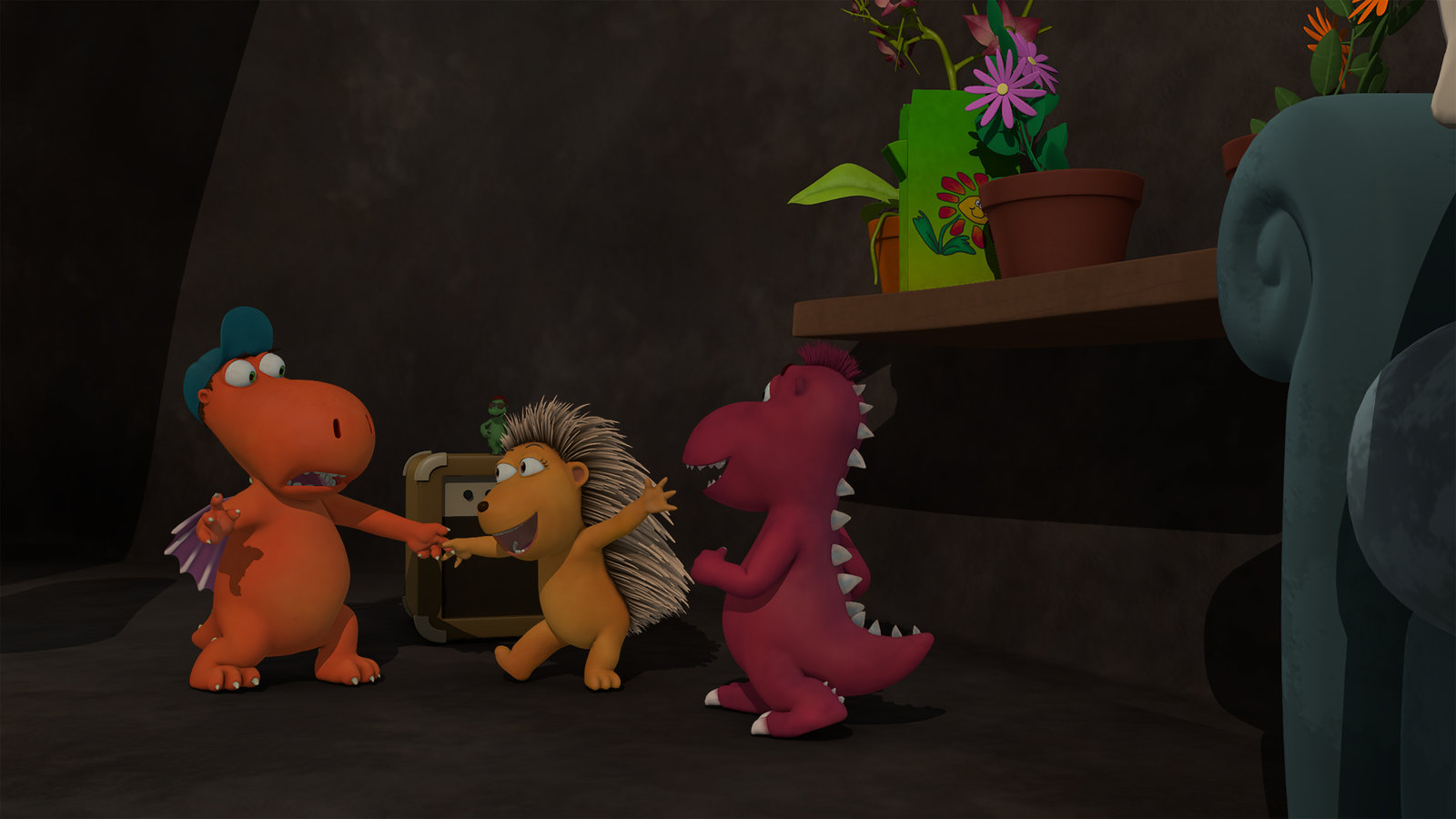 Sturmfreie BudeEndlich sturmfreie Bude! Matilda, Oskar und Mini Mo überreden Kokosnuss zu einer Spontanparty in der Höhle von Familie Klaue.Bild: © ZDF und Caligari Film