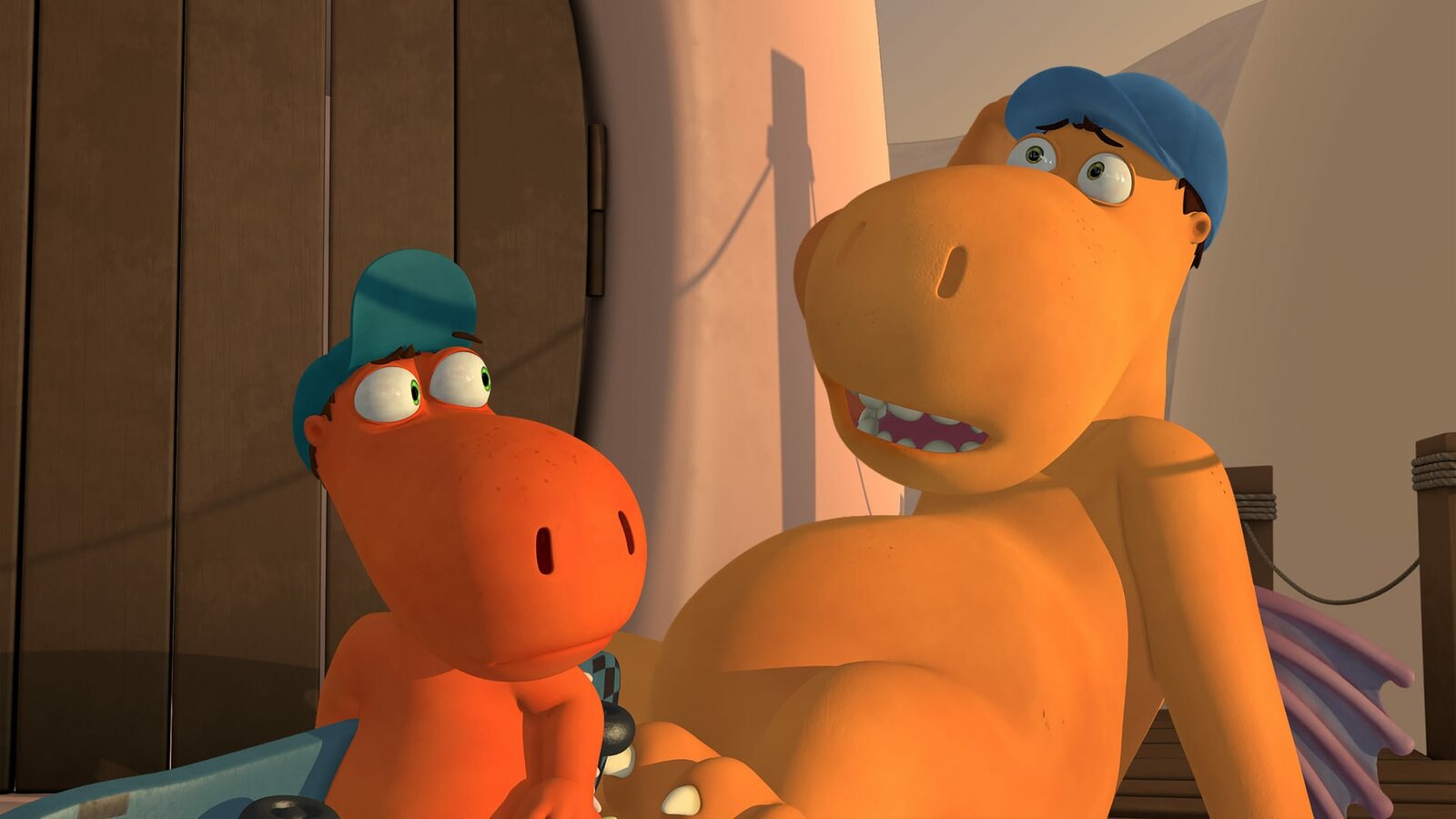 Chef will hoch hinausDie Freunde sind zufrieden mit ihrem Video. So wird Chef sicherlich nicht das Fressdrachendorf verlassen.Bild: © ZDF/Caligari Film