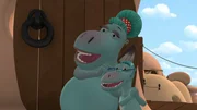 Mini Mos große ChanceDer junge Wasserdrache Wokki muss seine Drachenprüfung antreten. Kokosnuss, Oskar und Matilda dürfen ihn dabei begleiten.Bild: © ZDF/Caligari Film