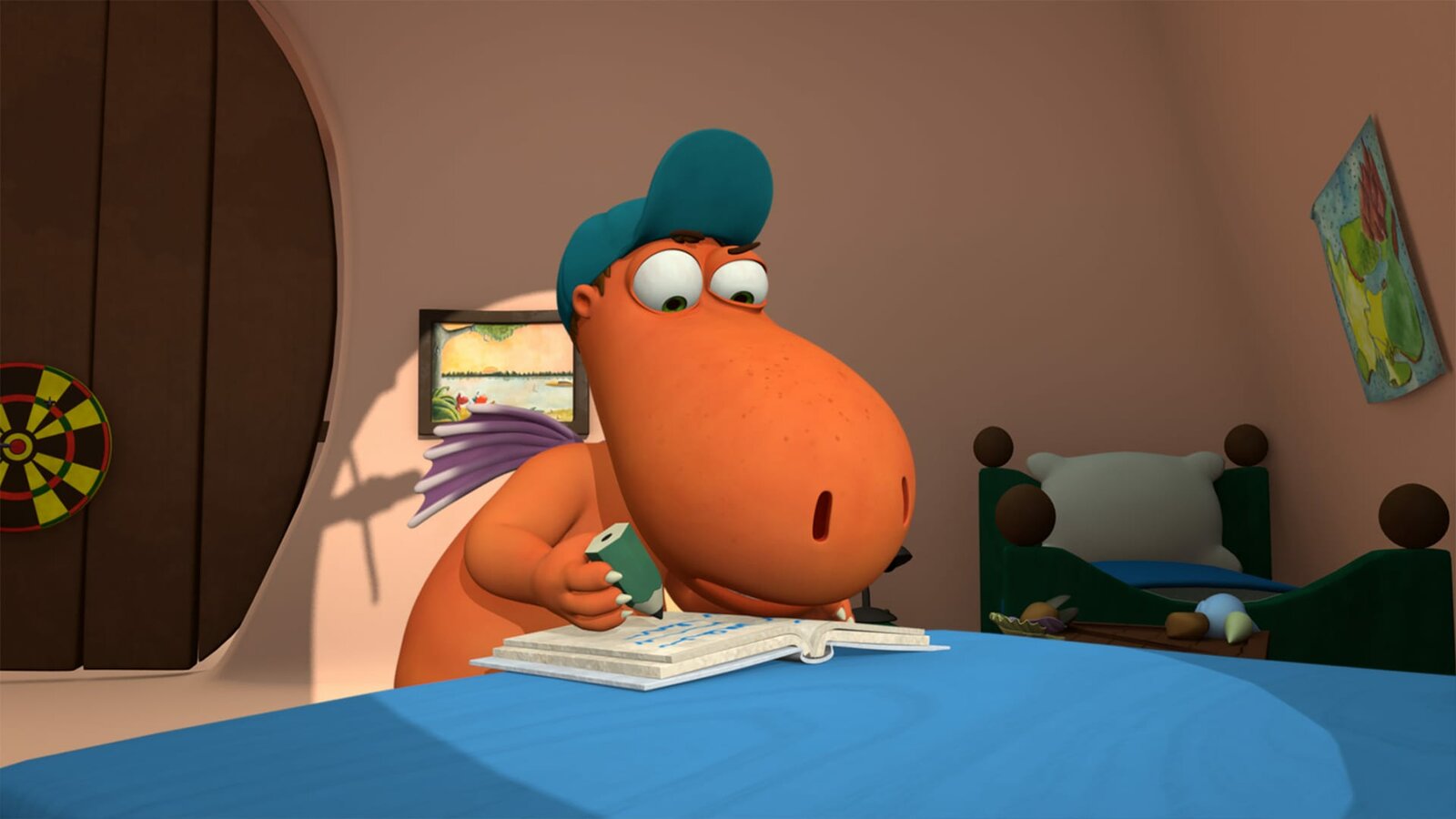 Das HöhlenmonsterKokosnuss schreibt sein eigenes Buch.Bild: © ZDF/Caligari