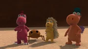 Gewusst wie!Weil sie von den Zauberbeeren genascht haben, sind Oskar, Matilda und Kokosnuss sehr geschrumpft. Sie sind jetzt kaum mehr größer als der Käfer, mit dem Oskar sich angefreundet hat.Bild: © ZDF/Caligari Film