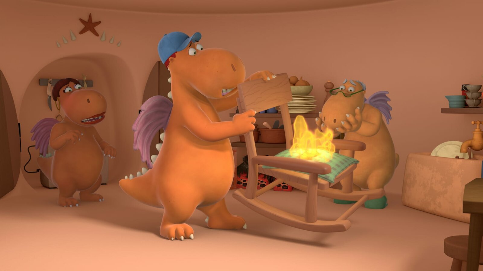 DrachenschluckaufMagnus, Mette und Opa Jörgen leiden am berüchtigten Drachenschluckauf. Jeder Hicks setzt etwas in Brand!Bild: © ZDF/Caligari Film