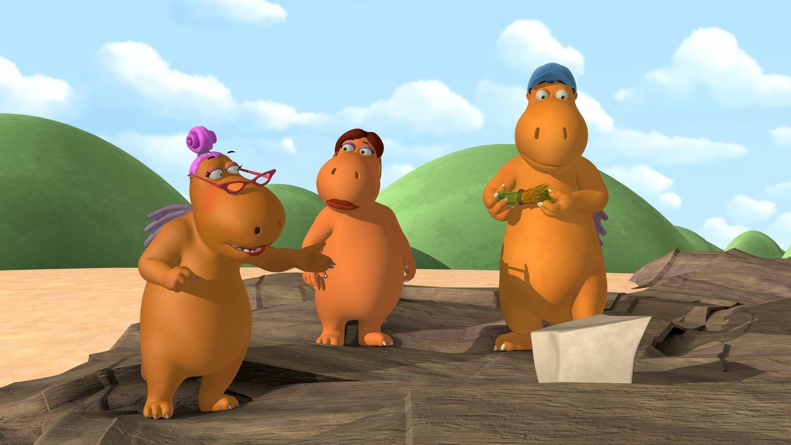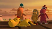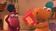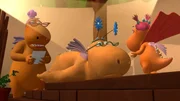 Der große Schluckauf"Der kleine Drache Kokosnuss", "Der große Schluckauf." Kokosnuss und seine Freunde sollen bereits verdorbene Drachenfrüchte zum Komposthaufen bringen. Doch dem Trio ist diese Aufgabe viel zu aufwendig. Lieber werfen sie die faulen Früchte einfach in die Schlucklöcher. Als die Schlucklöcher deshalb starken Schluckauf bekommen, ist bald guter Rat teuer. Überraschend fällt Mini Mo nämlich in so ein Schluckloch! Beim Versuch, sie zu retten, ereilt Matilda, Oskar und Kokosnuss bald darauf prompt dasselbe Schicksal.Bild: © ORF eins