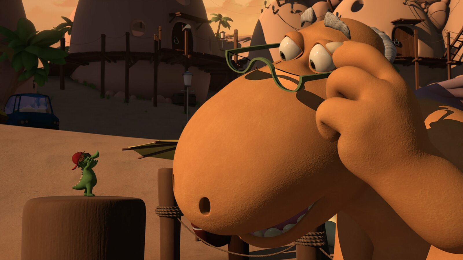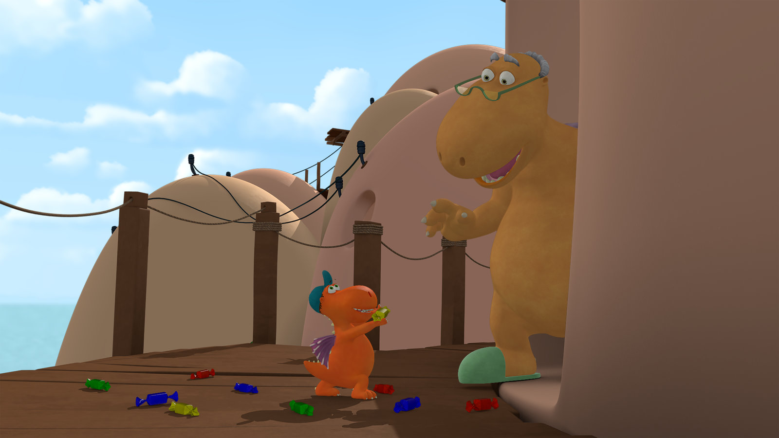Der RülpsgeistMini Mo, der kleinste Drache der Insel, und Opa Jörgen schmieden einen Plan.Bild: © ZDF/Caligari