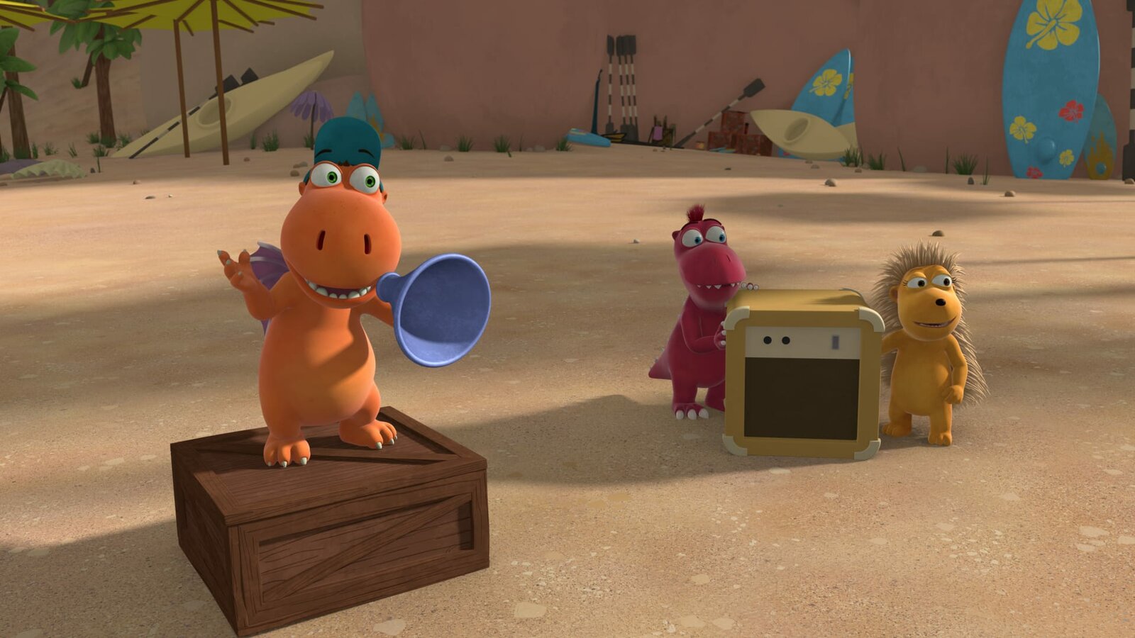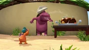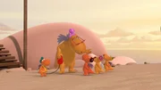 Zoff am StrandKokosnuss versucht den unsinnigen Streit zu schlichten. Er schlägt ein Spiel um die Wahl der Plätze vor.Bild: © ZDF/Caligari Film