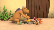 Das Höhlenmonster"Der kleine Drache Kokosnuss", "Das Höhlenmonster." Dem herzensguten Höhlendrachen Balduin schlottern vor Angst die Knie. In seiner Behausung hat sich ein riesiges Monster einquartiert! Kokosnuss überredet seinen Vater, Balduin eine Nacht bei ihnen schlafen zu lassen. Da Balduin aber von Natur aus furchtbar stinkt, ist allen sehr schnell klar, dass dies keine Lösung auf Dauer sein kann. Vielmehr sieht es ganz danach aus, als bliebe Balduin wohl nichts anderes übrig, als sich seiner Angst zu stellen und dem Monster ins Auge zu blicken.Bild: © ORF eins