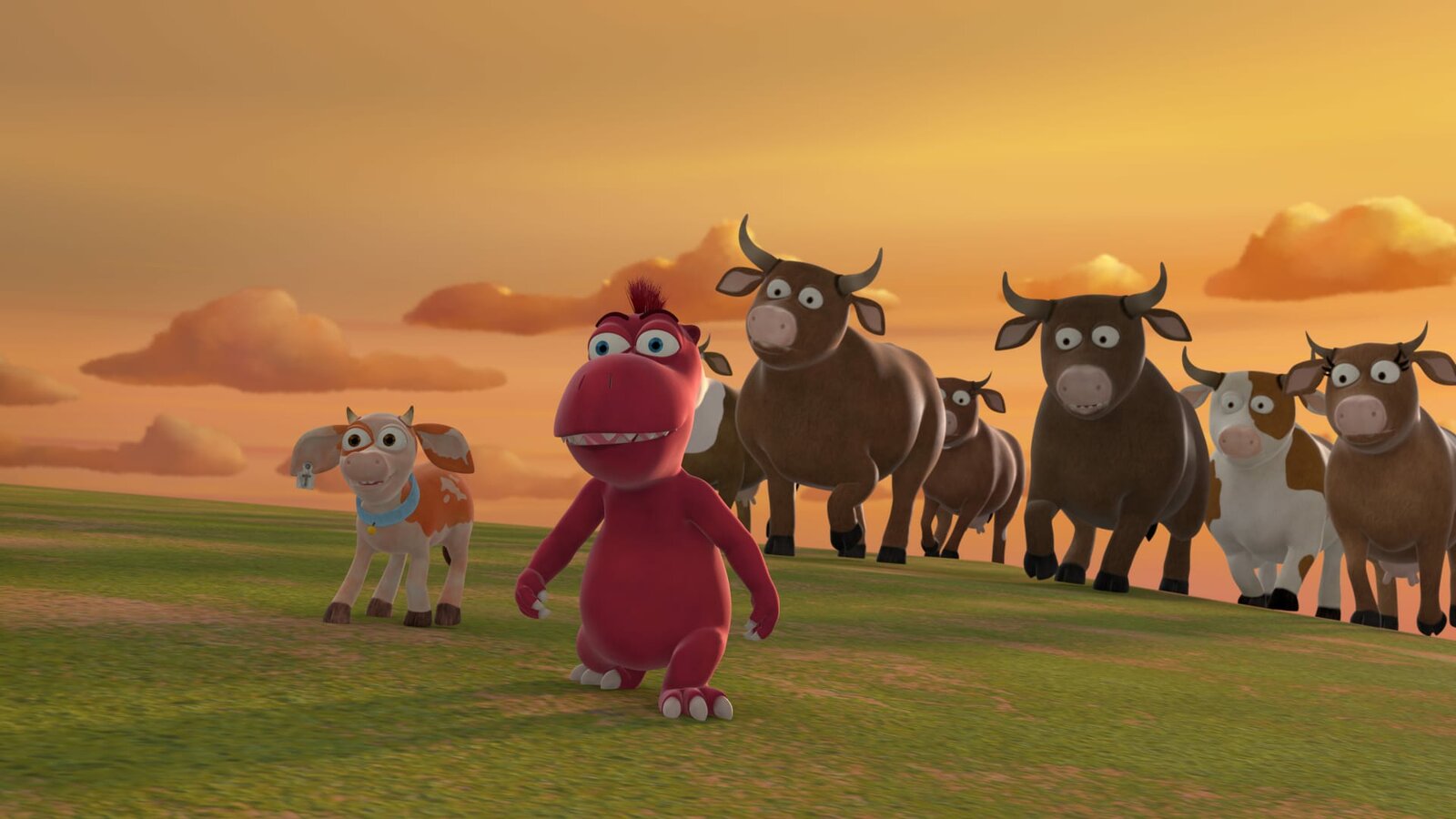 Der perfekte BruderOskar und Steaky wollen einen Spaziergang machen. Doch plötzlich folgt ihnen die gesamte Kuhherde.Bild: © ZDF/Caligari Film
