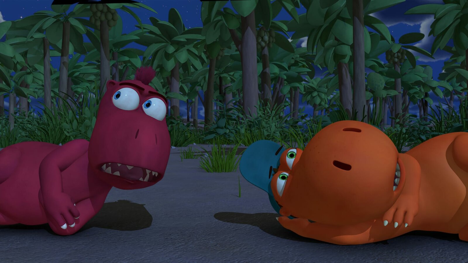 Die MutprobeEine Mutprobe mitten im finsteren Wald. Kokosnuss und Oskar hatten sich das irgendwie netter vorgestellt.Bild: © ZDF/Caligari