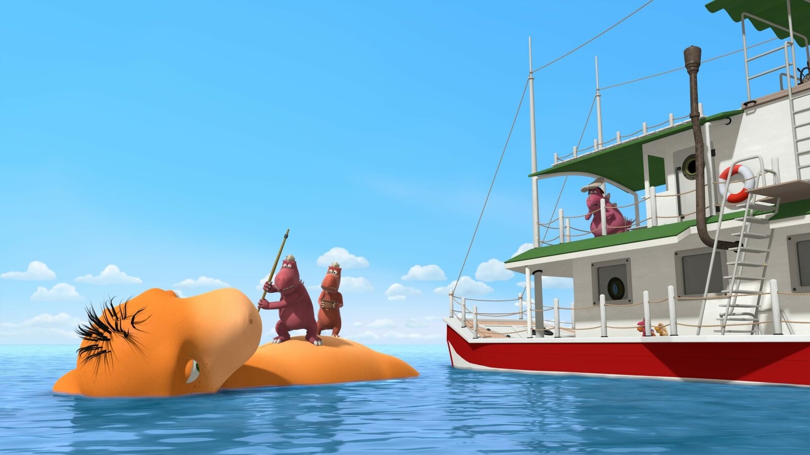 Amadeus in GefahrChef macht Jagd auf Amadeus, den großen Meeresdrachen. Er wird ihm doch hoffentlich nichts antun wollen?Bild: © ZDF/Caligari Film