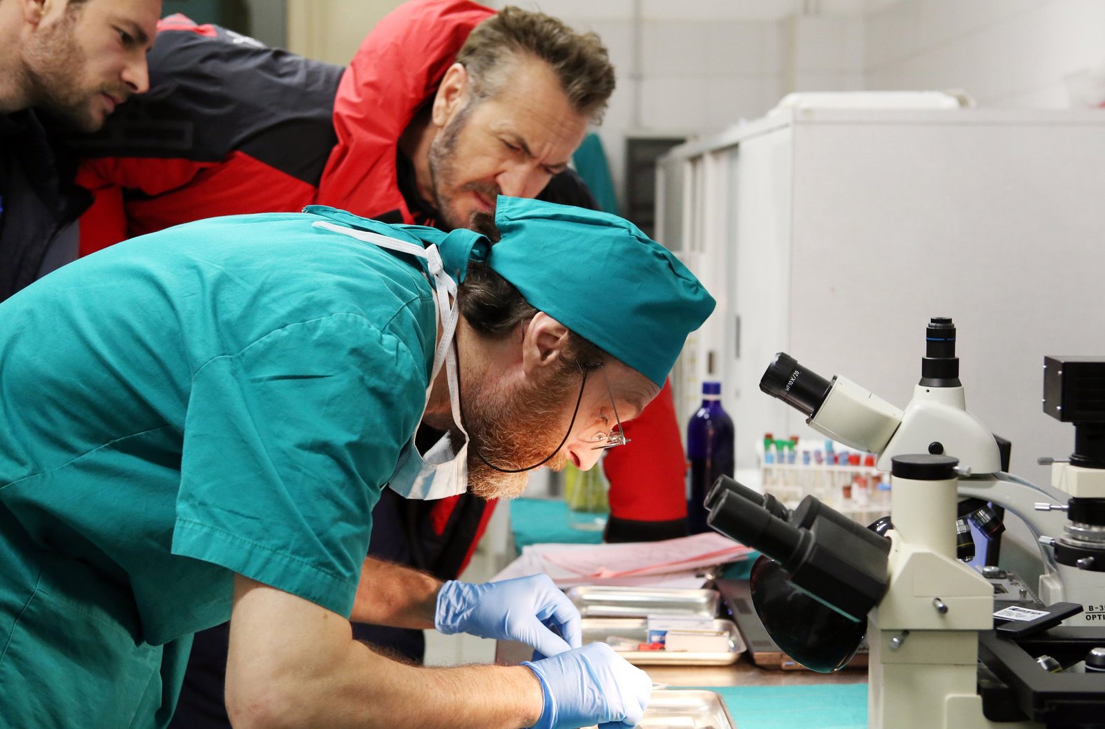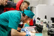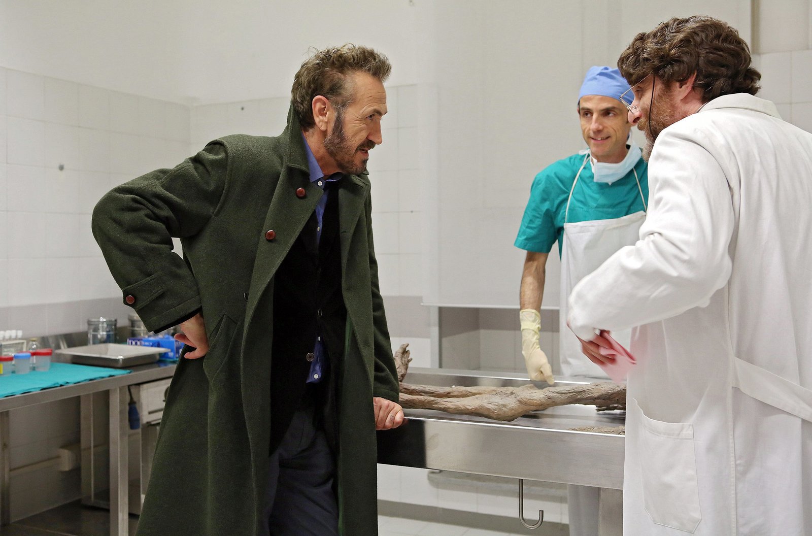 Sturz in den TodRocco Schiavone (Marco Giallini) mit seinem jungen Assistenten Italo Pierron (Ernesto D?Argenio), bei seinem Freund dem Gerichtsmediziner Alberto Fumagalli (Massimo Reale).Bild: © NDR