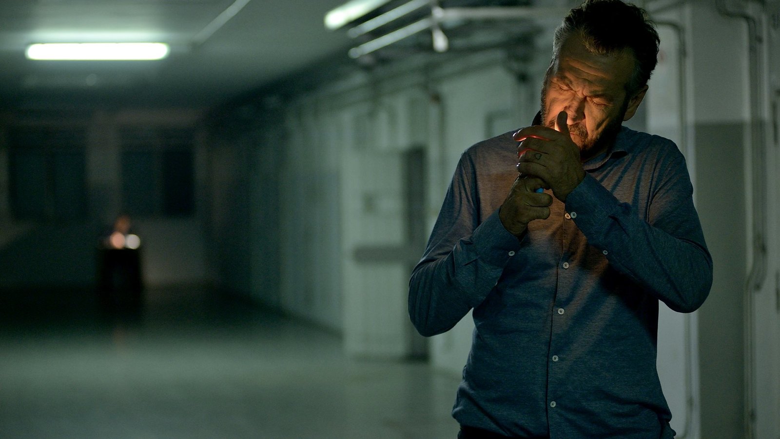 Sieben Jahre sterbenVice-Questore Rocco Schiavone (Mario Giallini) mit der unvermeidlichen Zigarette...Bild: © ARD Degeto
