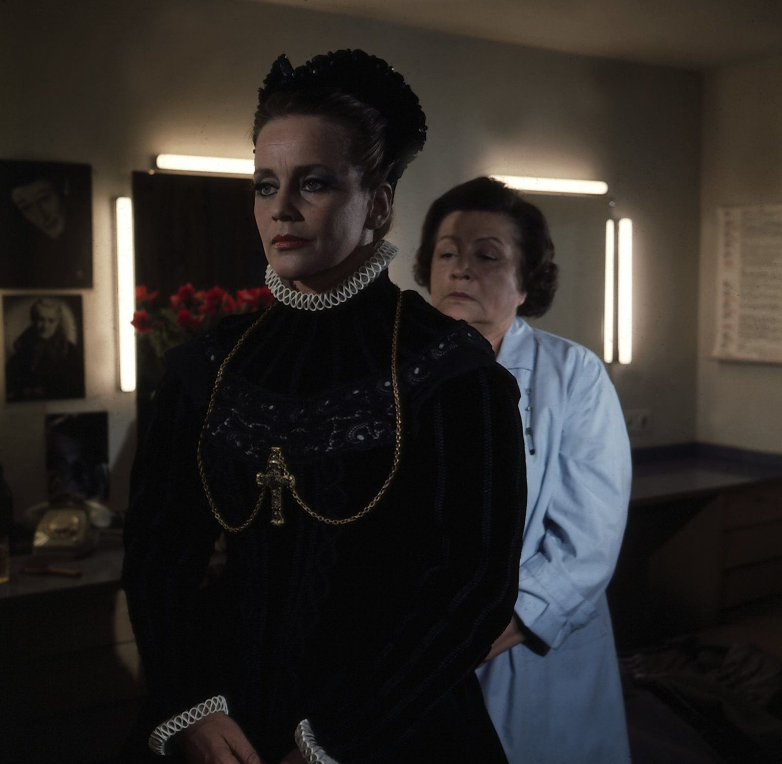 Zum ersten Mal in einer deutschen Fernsehproduktion spielte Maria Schell eine Hauptrolle: Irene Pauli (Maria Schell, l.), gefeierter Bühnenstar in Cavalleria Rusticana, kommt erschöpft in ihre Garderobe zurück. Garderobiere (Doris Kiesow, r.).
