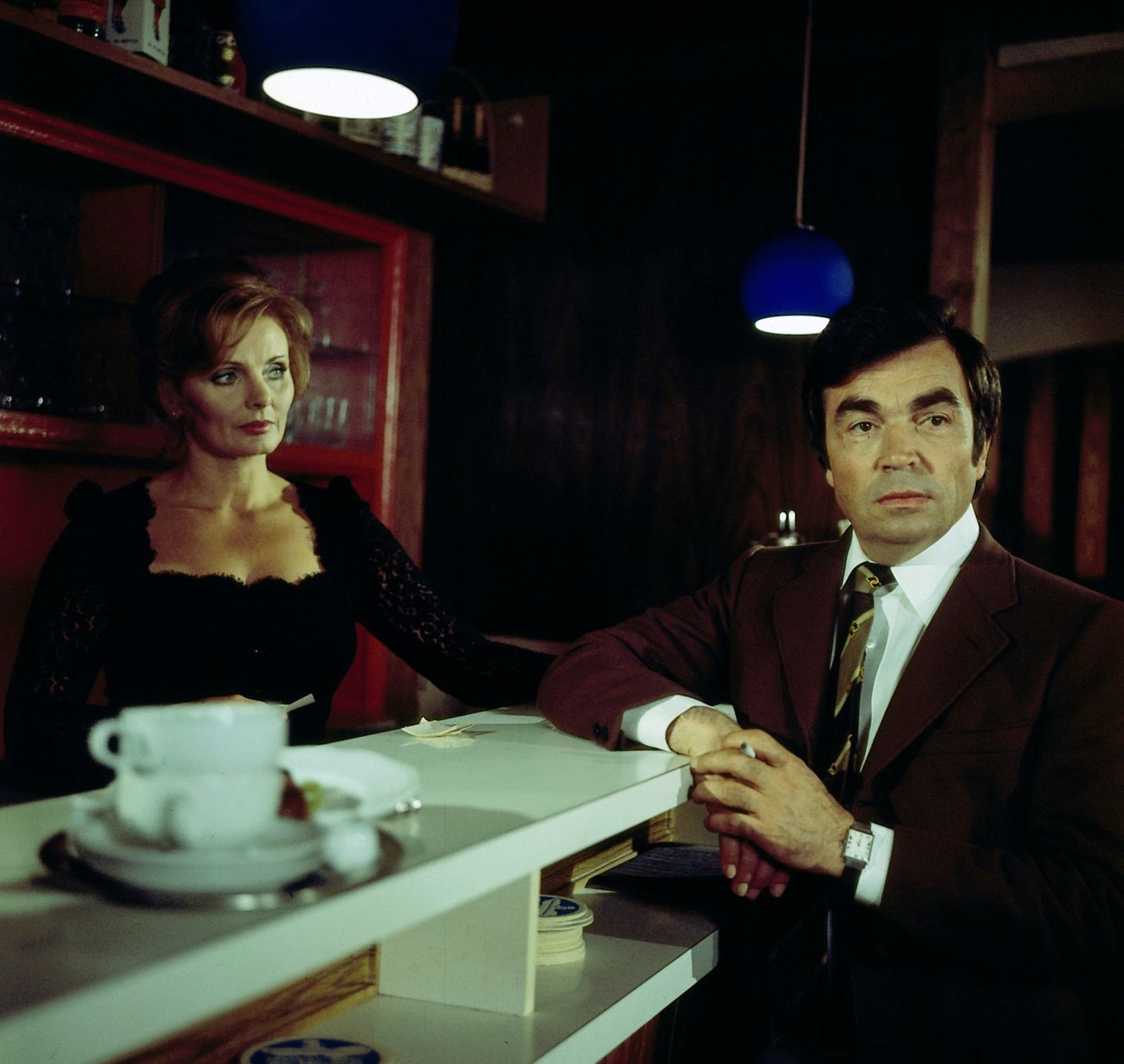Wolfgang Karass (Götz George, r.) führt ein recht sorgloses Leben, bei dem er sich keinerlei moralischem Zwang unterwirft. Das macht ihn für die Kripo verdächtig, aber bisher hat man ihm nichts nachweisen können. (Tanja Lobbes, l.)