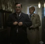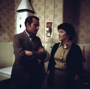 Frau und Herr Heismeier (Eva Berthold und Walter Giller) sind erschüttert, als sie von der Polizei verdächtigt werden, irgendetwas mit dem Tod eines Einbrechers zu tun zu haben.