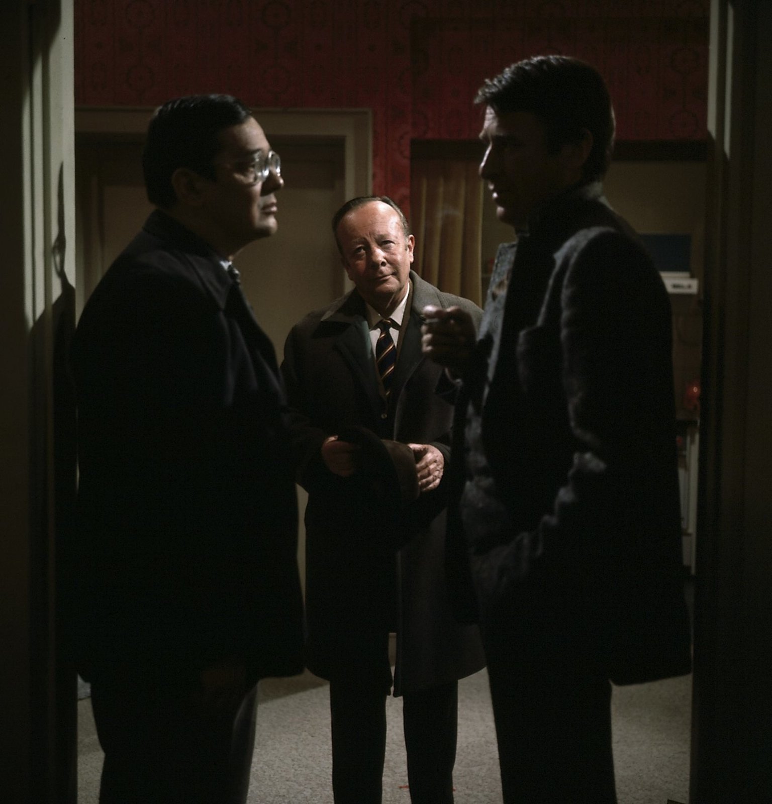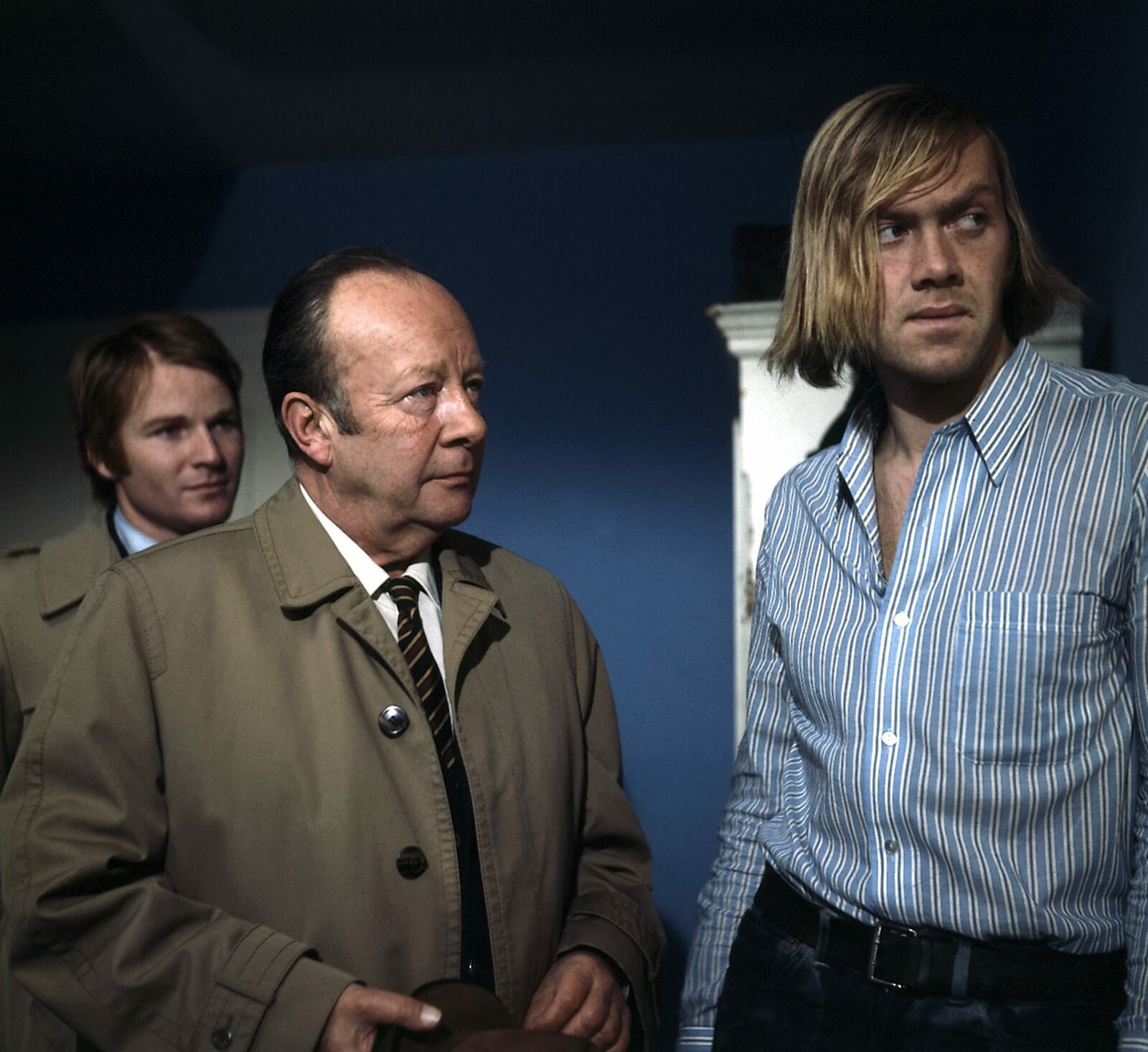 Was weiß der Hausmeister Seuke (Joseph Vinklar, l.)? Diese Frage stellt sich für Kommissar Keller (Erik Ode, M.) und Grabert (Günther Schramm, r.).