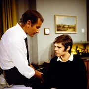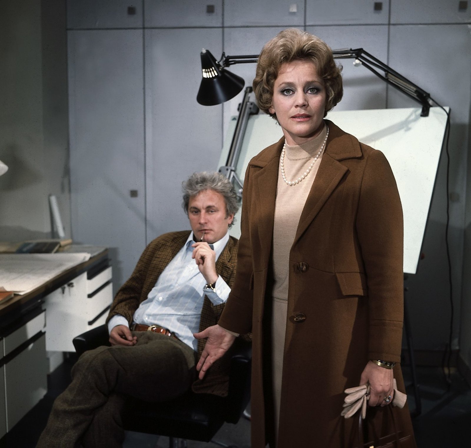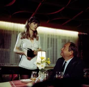 Der LiebespaarmörderHerr Murr unternimmt wieder einmal den vergeblichen Versuch, die schöne Anita zu einem Rendezvous zu überreden. Aber, wie jedes Mal, lehnt Anita auch heute ab (Christiane Krüger, Johannes Schauer).Bild: © ZDF und Neue Münchner Filmprod..