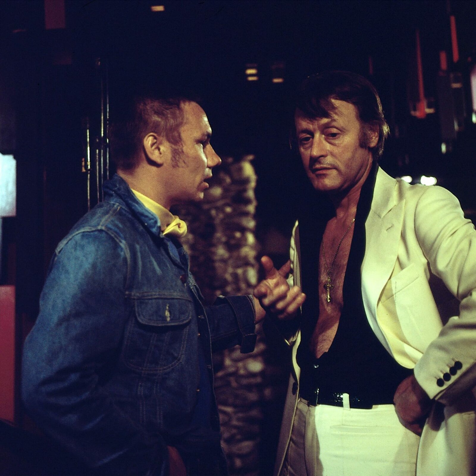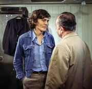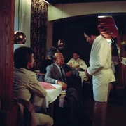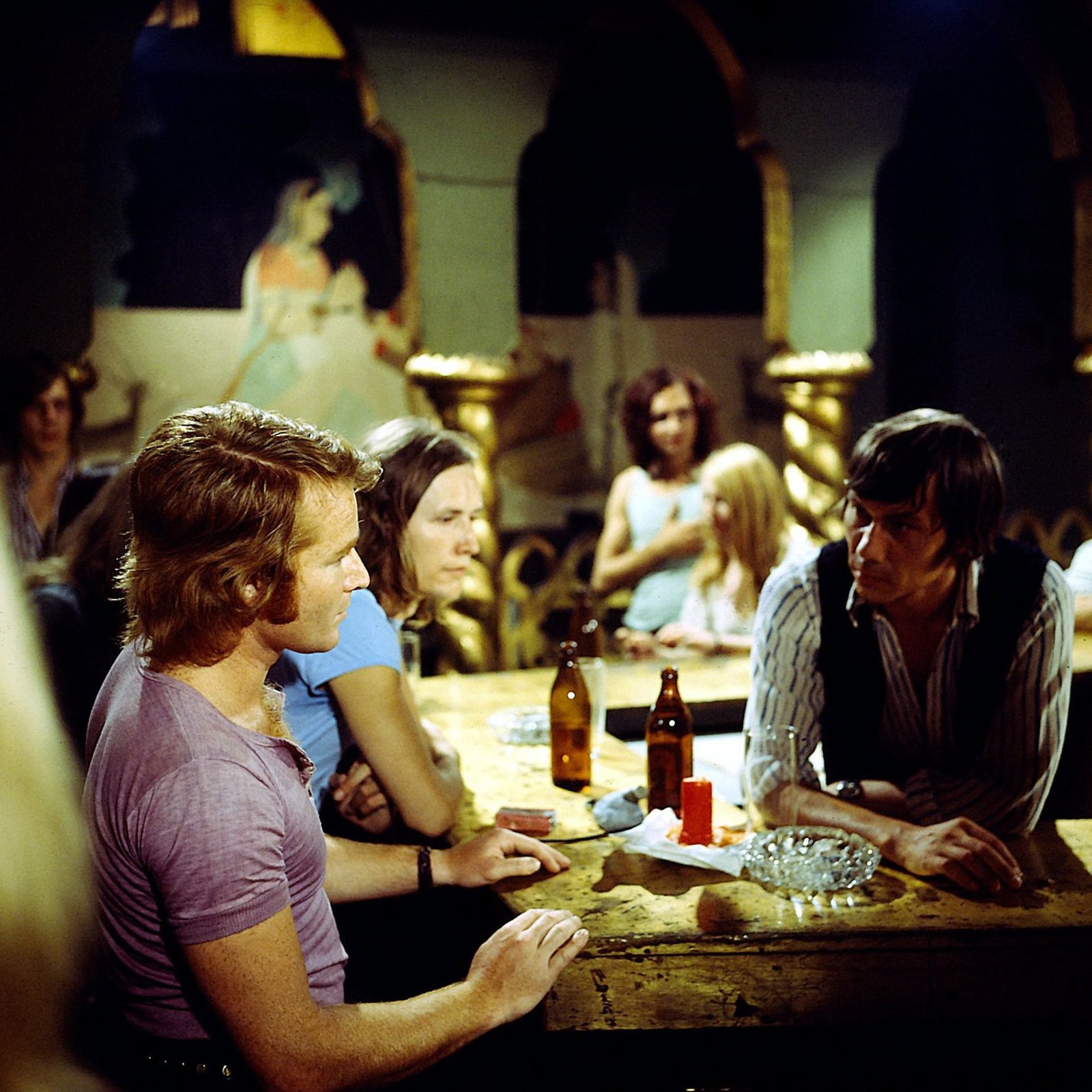 MykonosIn einer etwas obskuren Kneipe stößt Harry Klein auf Ganoven Heymann. Sein Gerede bringt den Kommissarassistent auf eine gute Idee. (Fritz Wepper, Kleindarsteller, Fred Haltiner.Bild: © ZDF und Neue Münchner Fernsehproduktion.