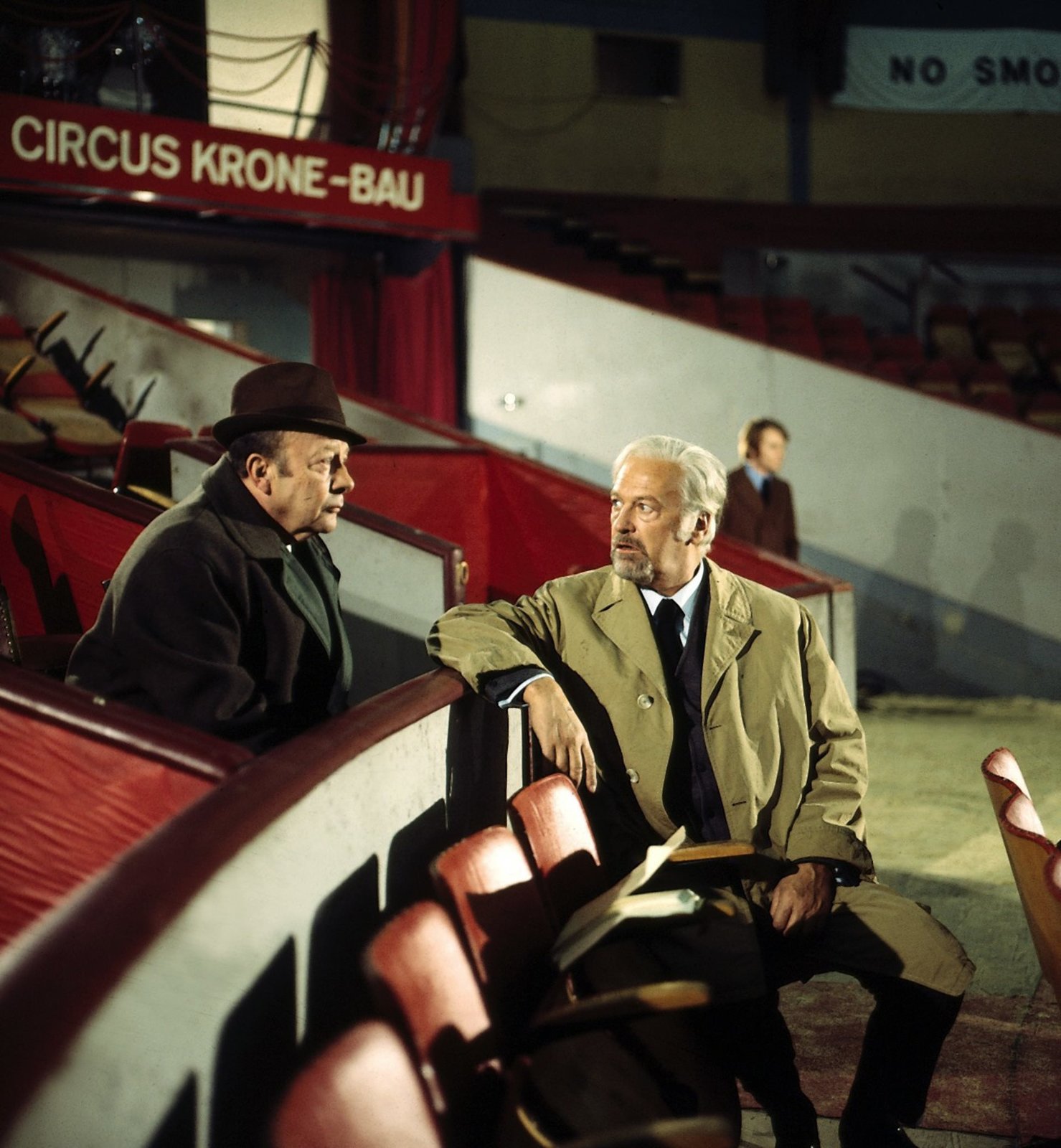 Drei Tote reisen nach WienMit seinen Ermittlungen muss der Kommissar (Erik Ode, r.) rasch zu einem Ergebnis kommen, wenn er verhindern will, dass zwei weitere Morddrohungen wahr werden. Heines (Reinhard Glemnitz, l.)Bild: © ZDF und Neue Münchner Fernsehproduktion.