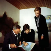 MykonosDie griechische Insel Mykonos ist für das Ehepaar Kerk kein Begriff. Erst auf der Landkarte müssen sie sich zeigen lassen, wo dieses Hippieparadies liegt. (Karl John, Maresa Hörbiger, Irmgard Först).Bild: © ZDF und Neue Münchner Fernsehproduktion./Neue Münchner Fernsehproduktion
