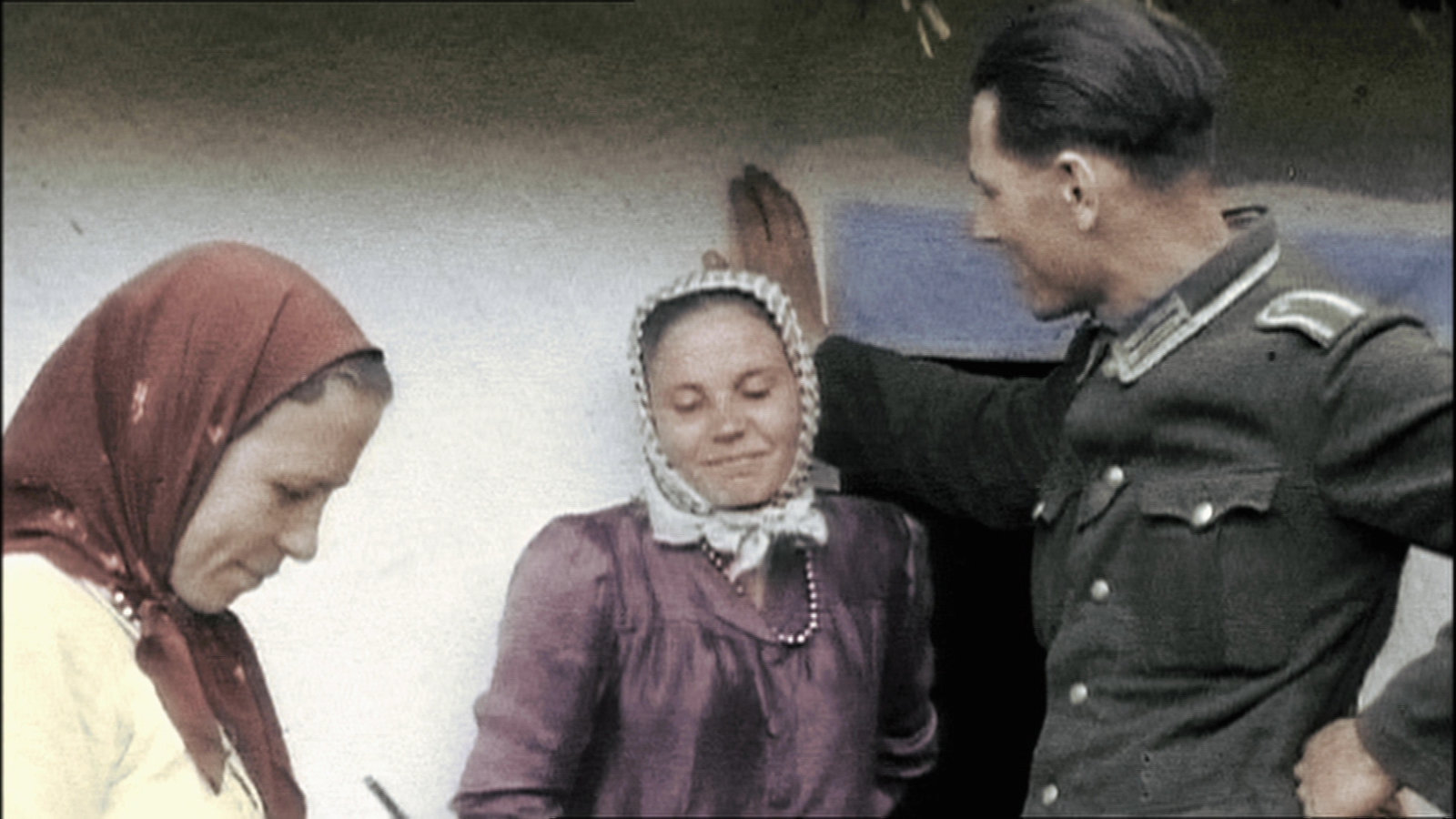 Der Angriff auf die SowjetunionSCREEN GRAB: Ukraine, August 1941 - German soldier chatting up young Ukrainian women.Bild: © CC & C / National Geographic Channel