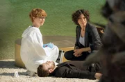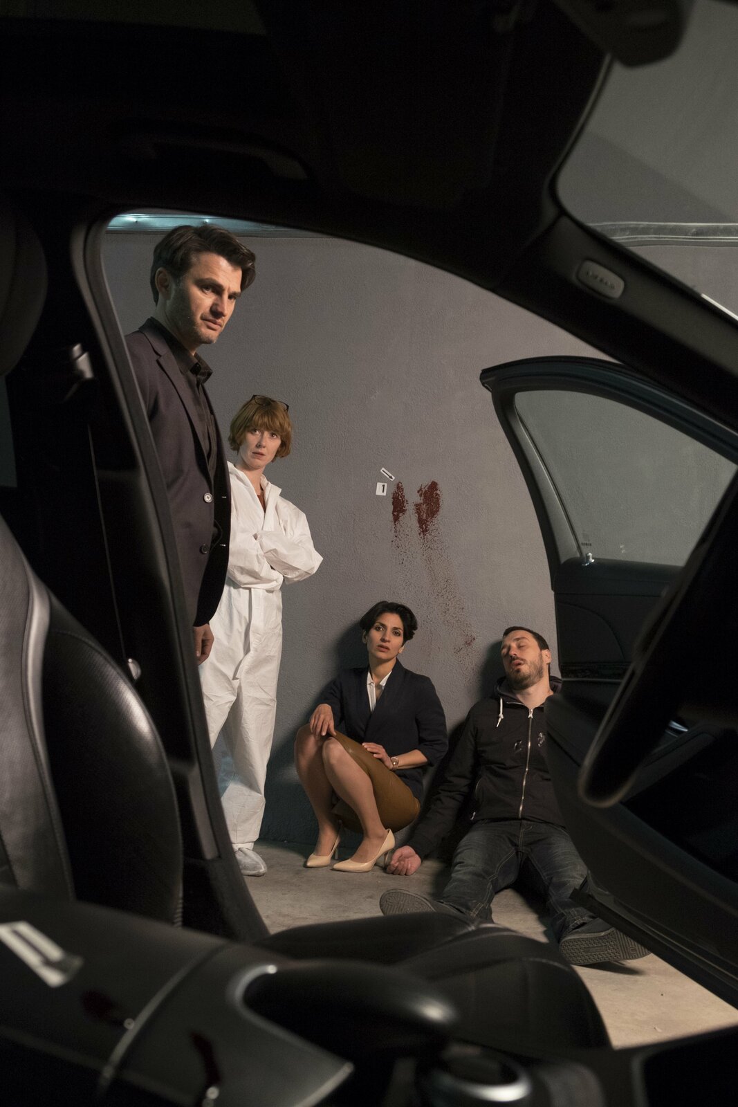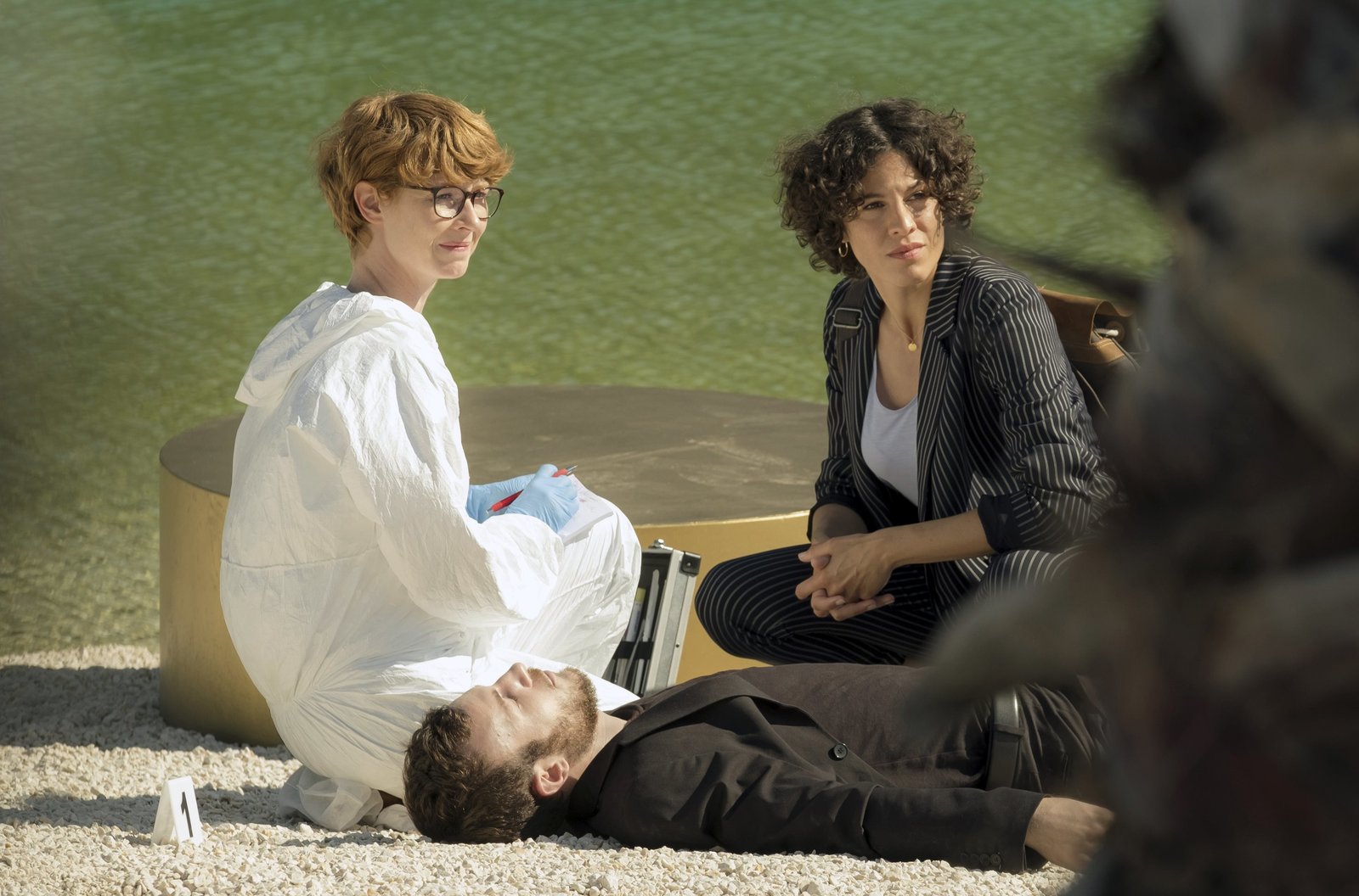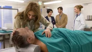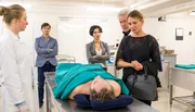 TränenhochzeitKommissarin Stascha Novak (Jasmin Gerat) und Pathologin Brigitta Stevic (Sarah Bauerett, li.) mit der Leiche des Bodyguards Duje (Luka ?erjan).Bild: © ARD Degeto/Conny Klein