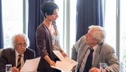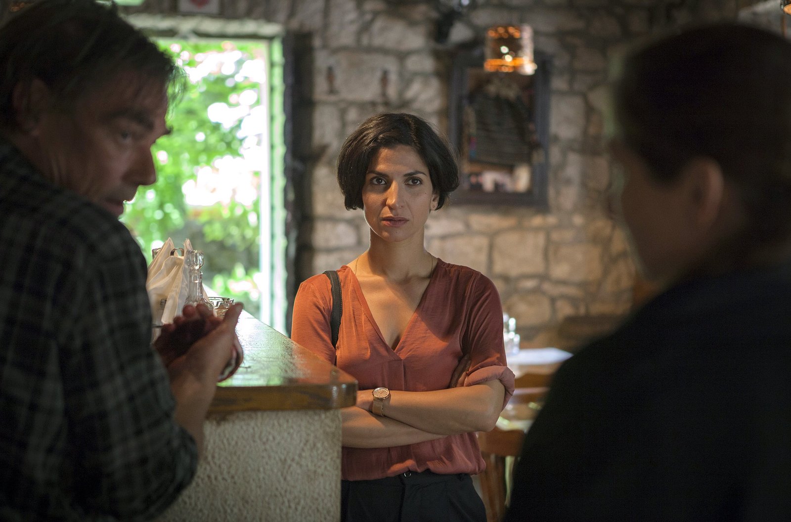 Tod einer LegendeBranka Marić (Neda Rahmanian) legt sich mit Polizeichef Bilić (Juraj Kukura, re.) an. Kommissionsmitglied Muljačić (Anton Tudic, li.) weiß nicht, wie ihm geschieht.Bild: © ARD Degeto/Erika Hauri