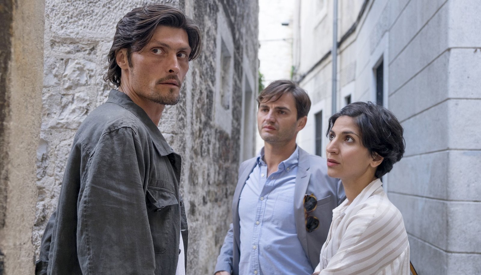 Tod einer LegendeJournalist Stipe Rif (Stipe Erceg, li.) kennt dunkle Geheimnisse der angesehenen Familie Trevi?. Er will aussagen, wenn Branka (Neda Rahmanian) und Emil (Lenn Kudrjawizki) ihm Zeugenschutz versprechen.Bild: © ARD Degeto/BR/Erika Hauri
