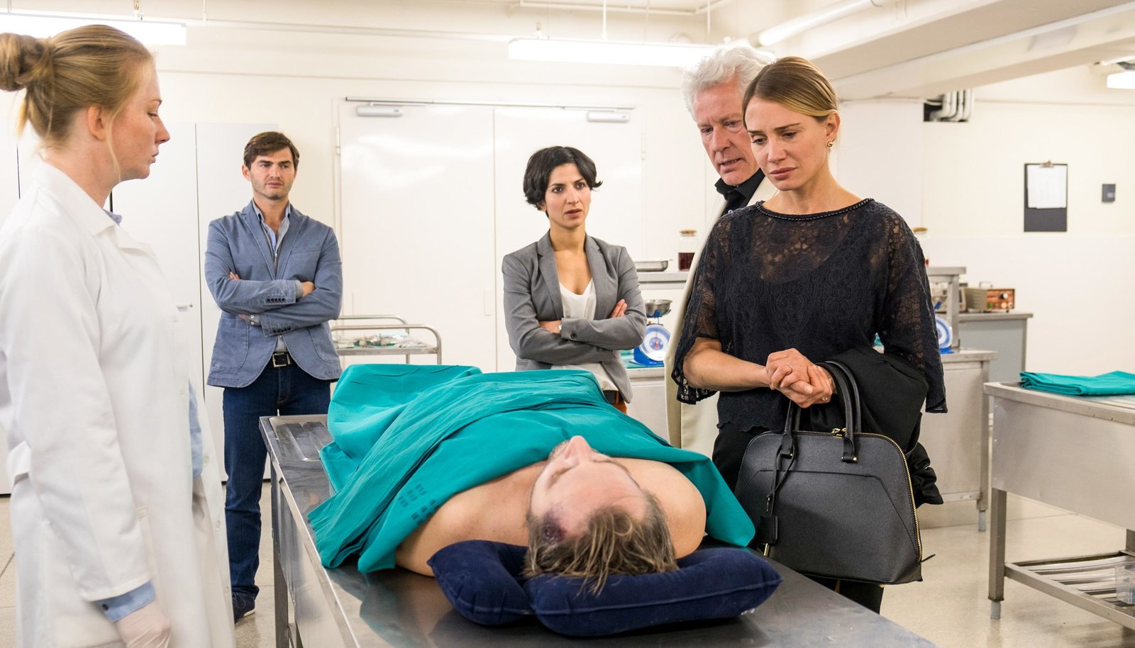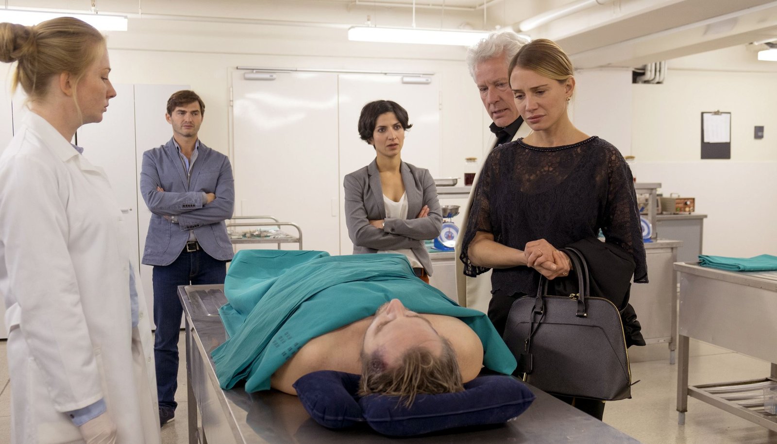 Tod einer LegendeKatja Studt (Pathologin Vera), Lenn Kudrjawizki (Emil Perica), Janko Rako? (Goran Trevi?), Neda Rahmanian (Branka Maric), Miroslav Nemec (Dragan Trevic), Nadeshda Brennicke (Jasna Trevic).Bild: © ORF 2