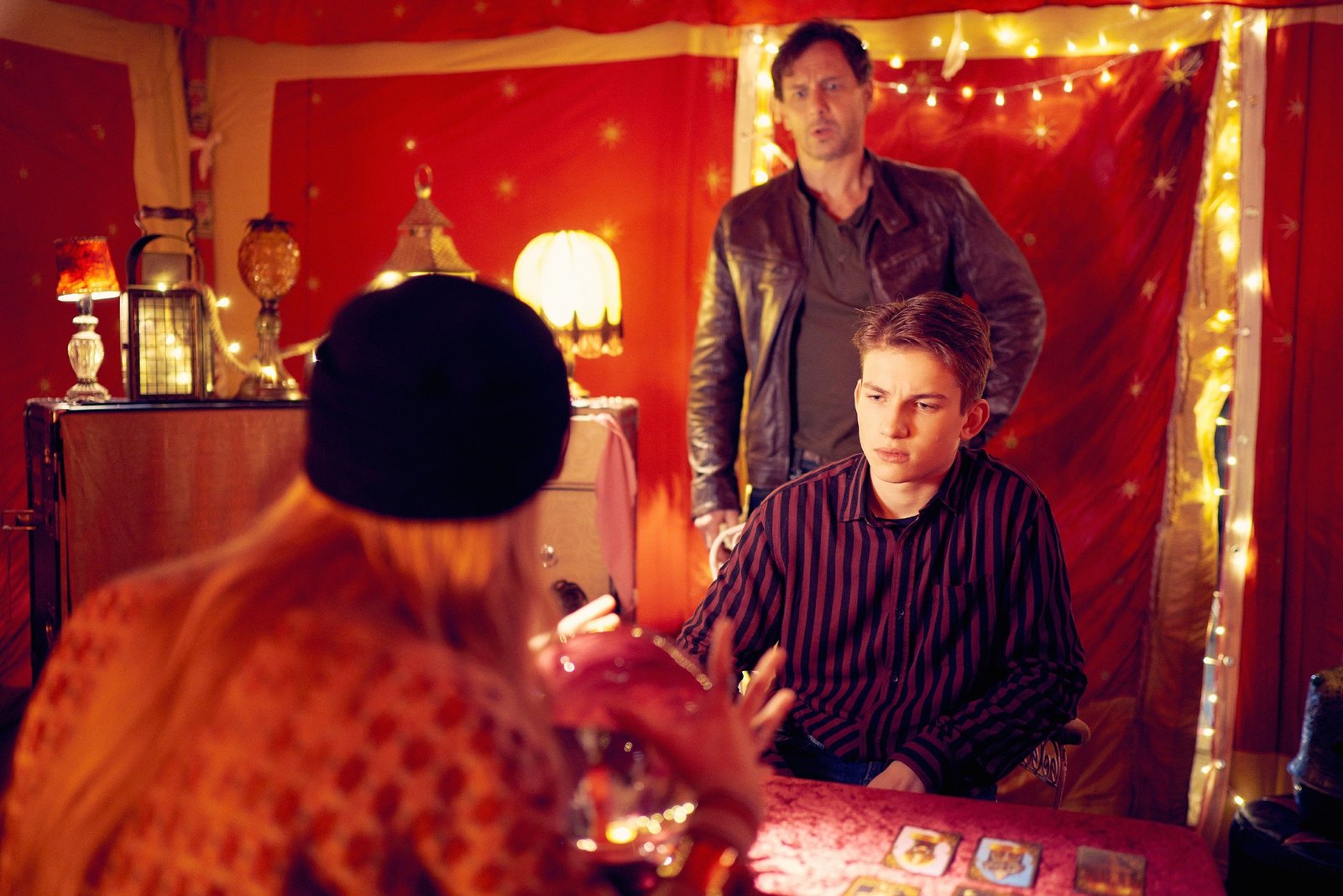 Das sollen mir die Toten mal selbst erklärenAnna (Lili Budach) wollte gerade ihrem Schwarm Marc (Luke Matt Röntgen, r.) die Zukunft voraussagen, aber die Rechnung hat sie ohne den Vollmer (Hendrik Duryn) gemacht... +++Bild: © TVNOW / Frank Dicks