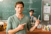 ... und trotzdem kriegen die irgendwie immer alles hin!Der verhaltensauffällige Max (Nick Julius Schuck, r.) rast mit dem Skateboard im Schulgebäude auf Stefan Vollmer (Hendrik Duryn) und Karin zu. Karin stürzt dabei.Bild: © MG RTL D / Frank Dicks