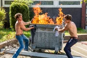 Jeder hat doch irgendwie 'nen SchadenStefan (Hendrik Duryn) und Alexander (Lion Wasczyk) versuchen den Brand in Mülltonne zu löschen.Bild: © RTL / Frank Dicks