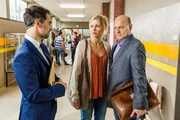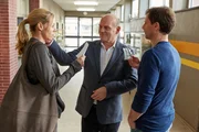 Hab ich 'nen bösen Zwilling?Karin Noske (Jessica Ginkel) ist entsetzt, dass Michael (Gabriel Merz, l.) die Schule verklagen will und fühlt sich ausgenutzt. Direktor Rose (Uli Gebauer) ist der Meinung, dass dies Karins Problem ist.Bild: © TVNOW / Frank Dicks / Sony Pictures FFP