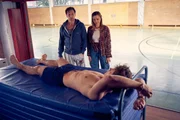 Ist es der Jagdtrieb, weil Säbelzahntiger ausgestorben sind?Stefan (Hendrik Duryn, l.) hat für Karin (Jessica Ginkel) eine Entspannungsüberraschung parat, als Direktor Rose (Ulrich Gebauer) auftaucht.Bild: © MG RTL D / Frank Dicks
