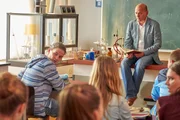 Verknallt? So'n Quatsch!Als Stefan (Hendrik Duryn) und Anne Flüchtlinge wie Waris (Dilara Usmann, 2.v.r.) und Kadra (Javeh Asefdja, 2.v.l.) in der Schule unterrichten wollen, äußert Karin (Jessica Ginkel) ihre Bedenken.Bild: © RTL / Frank Dicks / Sony P