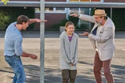 Okay, jetzt muss er weg!Stefan Vollmer (Hendrik Duryn, r.) und Michael (Gabriel Merz) sind bei Sascha (Lennart Betzgen, l.) und seiner Mutter (Theresa Scholze). Der Ex von Saschas Mutter stalkt die Familie. Michael hat einen Plan. Frau Frege ist jedoch skeptisch.Bild: © MG RTL D / Frank Dicks