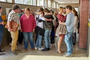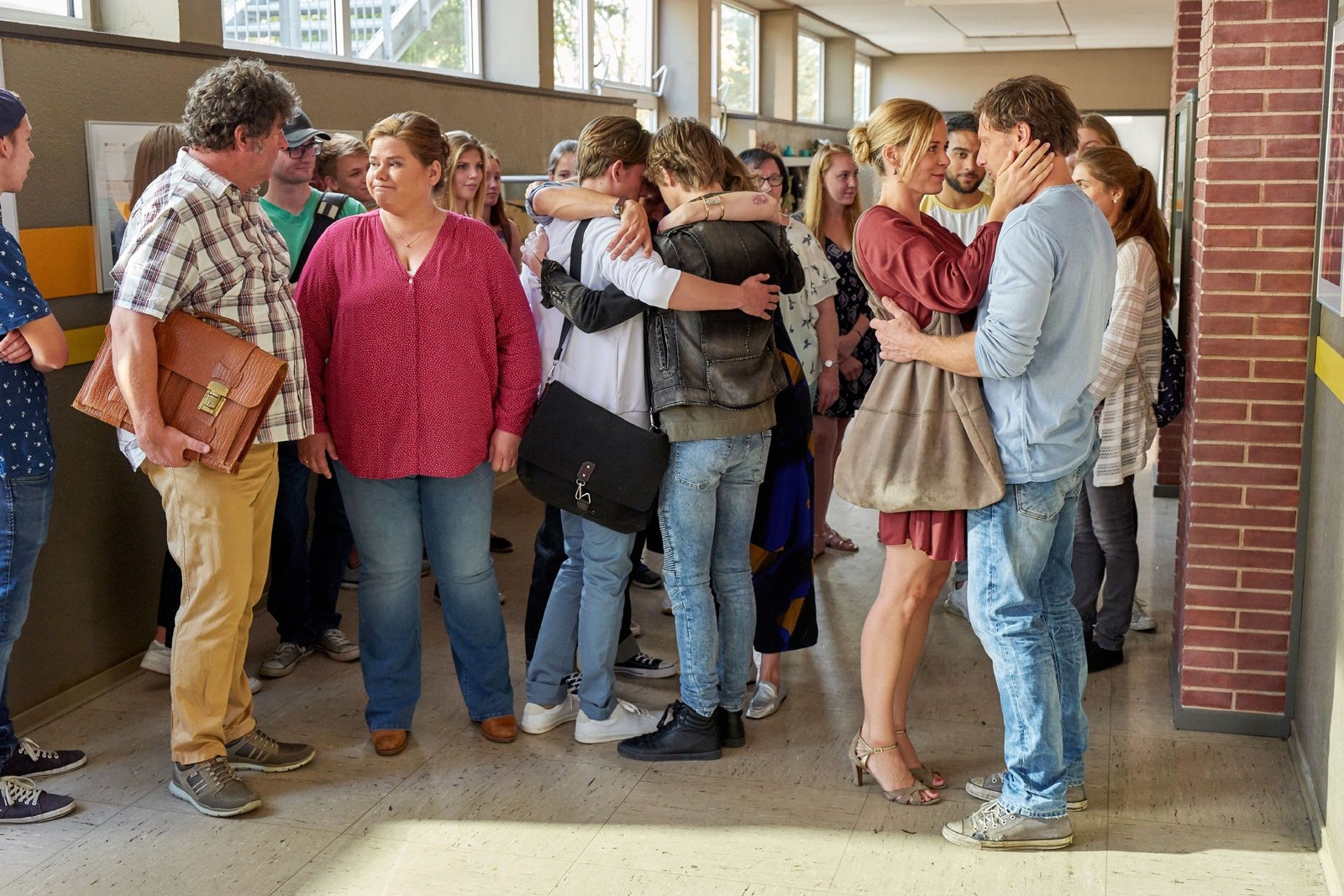Einfach mal Klartext geredet...Die Flureröffnung war ein voller Erfolg! Alle liegen sich glücklich in den Armen! (v.l.) Sievers (Rainer Piwek), Barbara (Nadine Wrietz), Matthias (Alvar Goetze), Paul (Alessandro Schuster), Fritzi (Lia Perez), Karin (Jessica Ginkel) und Vollmer (Hendrik Duryn).Bild: © MG RTL D / Frank Dicks
