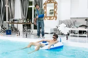 ...und dich auf deinen verdammten Knien!Rene (Michael Glantschnig, r.) verkatert im Pool, Stefan (Hendrik Duryn, l.) macht ihm Beine bzgl. Abiprüfung und Mila.Bild: © RTL / Kai Schulz / Sony P