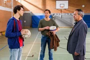Sie sind mein L-Lieblingslehrer!Stefan Vollmer (Hendrik Duryn, l.) fühlt beim Basketball mit Jakob (Mateo Wansing Lorrio) dessen Bruder Philipp (Max Schimmelpfennig) auf den Zahn.Bild: © RTL / Frank Dicks