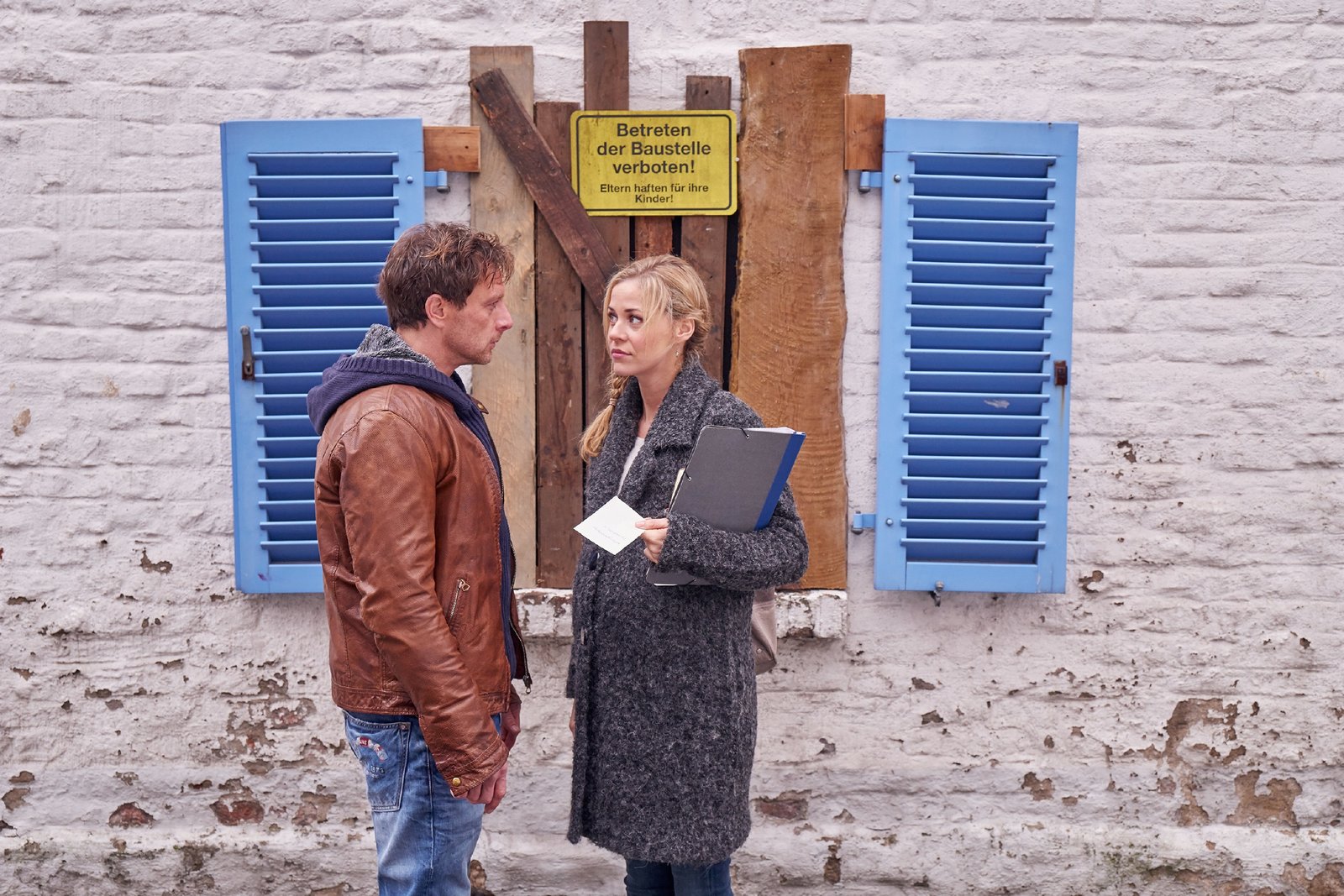 Du vermisst sie wirklich, oder?Stefan Vollmer (Hendrik Duryn, r.) schnappt sich Ulf (Richard Kreutz) von den Mauenheimern, der ihm eine faustdicke Überraschung präsentiert.Bild: © RTL / Frank Dicks
