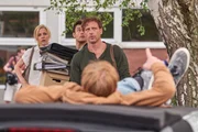 Entweder völlig bekloppt, oder StahleierAußenseiter Kevin (Moritz Klaus, vorne) wurde von seinen Mitschülern mal wieder verarscht. Beim Versuch, seine Tasche von einem Baum zu holen, stürzt er auf den parkenden Smart von Karin (Jessica Ginkel). Karin, Stefan (Hendrik Duryn, r.) und Patrick (Eugen Bauder, 2.v.l.) können es nicht fassen.Bild: © MG RTL D / Frank Dicks