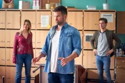 ...nimm dein Schwert mit!Vollmer (Hendrik Duryn, r.) empfängt Jonas (Merlin Rose) und Jule (Anna Bachmann) an ihrem ersten Tag.Bild: © TVNOW / Frank Dicks Foto: TVNOW / Frank Dicks