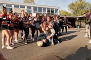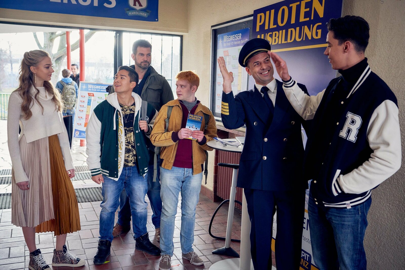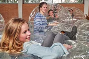 Am Ende kriegt der Held auch noch das MädchenNellie (Emilia Bernsdorf, l.), Marius (Tilman Pörzgen, M.) und ihre Mitschüler aus dem G-Kurs in Bumperbällen: Sie haben Spass und rammen sich gegenseitig!Bild: © RTL / Frank Dicks