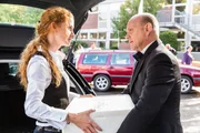 Ganz der Papa!Weil Sievers (Rainer Piewek, l.) eingeschüchtert ist und nicht mit der Schulamtsmitarbeiterin Julia Mai (Dagny Dewath) reden will, übernimmt Stefan (Hendrik Duryn) dessen Rolle.Bild: © RTL / Frank Dicks