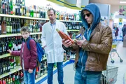 Ich glaub', Du bist hier das ProblemkindNach einer harten Nacht besorgt sich Stefan (Hendrik Duryn, r.) im Supermarkt gerade Katermittel, als ihn der 12-jährige Dennis (Paul Sundheim, l.) vor dem Supermarktleiter (Torsten Knippertz) des Diebstahls bezichtigt.Bild: © Frank Dicks/Sony Pictures